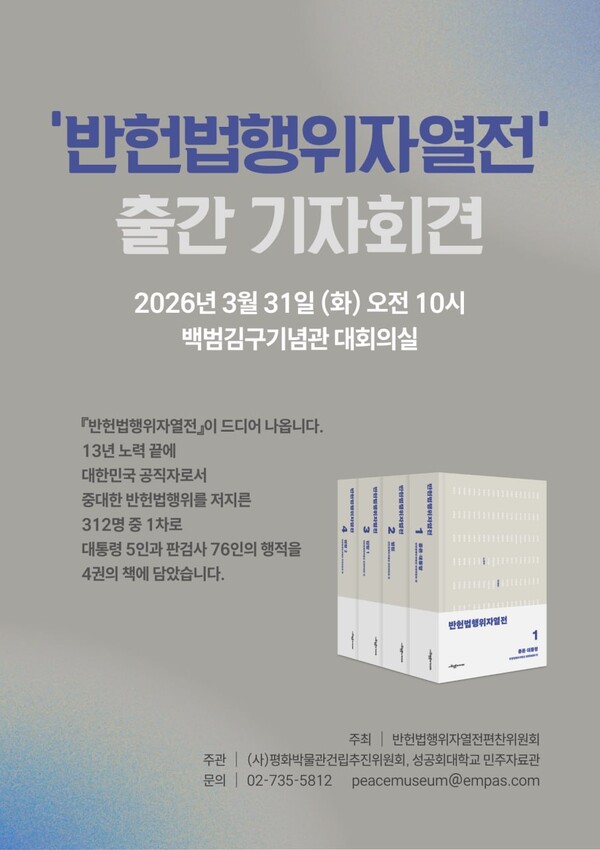그렇다면 지금 이 『반헌법행위자열전』이 갖는 의미는 분명하다. 이 책은 단순히 나쁜 사람들의 명단을 모아놓은 고발장이 아니다. 그것은 다음 세대를 위한 예방서다. 권력은 늘 법복을 입고, 헌법을 입에 올리며, 국가안보를 외치면서 인권을 짓밟아왔다. 그 패턴을 낱낱이 기록해 두지 않으면, 역사는 반드시 반복된다, 그것도 더 교묘하게.