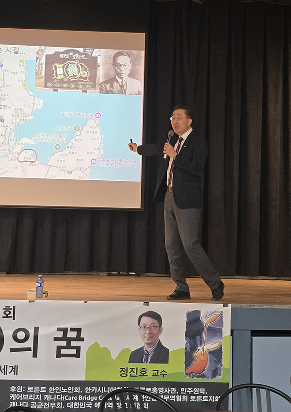 민주평통 토론토협의회(회장 이병룡)가 캐나다 동북아교육문화재단(이사장 한석현)과 공동으로 지난 2월12일 저녁 토론토 한인회관에서 개최한 ‘청포도의 꿈’ 주제 평화통일 강연회에서 강사 정진호 포스텍(POSTECH) 교수는 “청진과 포항을 쇳물로 이어 남북 철강 공동체로 동아시아 평화 경제시대를 열자”고 강조했다.