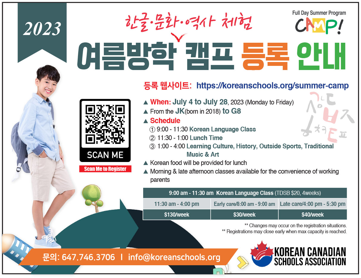 등록은 웹사이트 https://koreanschools.org/summer-camp로 하면된다. < 문의: 647-746-3706, info@koreanschools.org >