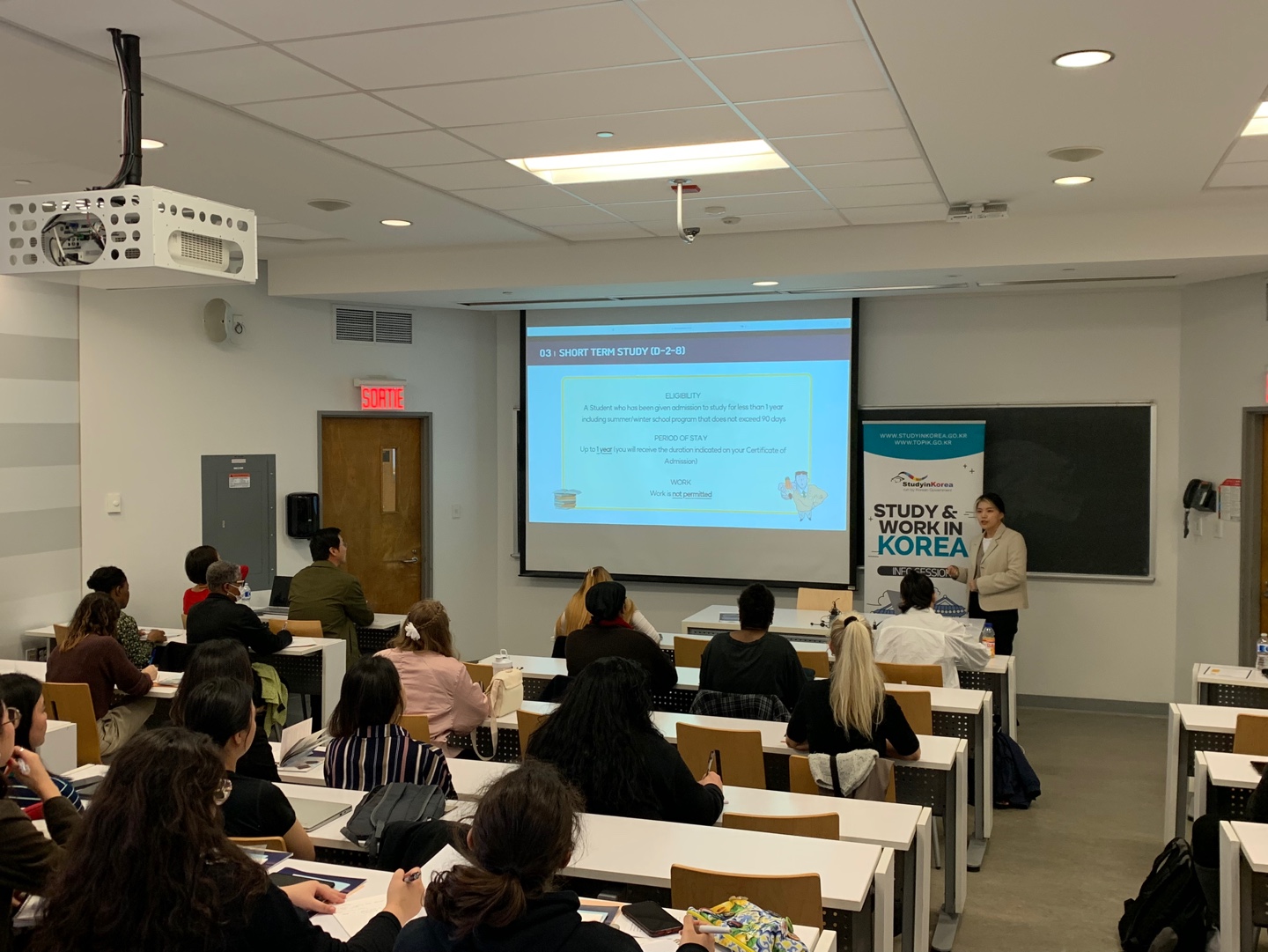 이번 설명회는 몬트리올대에서 한국어를 수강하는 학생 및 한국 유학에 관심있는 현지 학생을 대상으로 사전 신청을 받은 70여명의 학생들을 대상으로 한국 유학에 관한 설명과 함께 일대일 상담으로 다양한 정보를 제공했다.