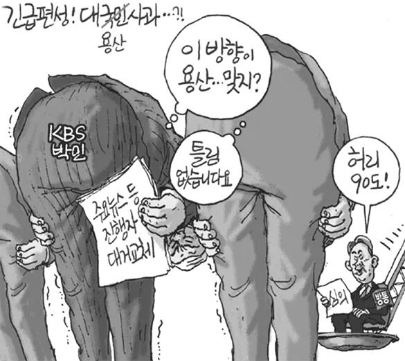 국민을 대표하는 국회 권력을 무력화할 수 있는 대통령의 위세는 독립성을 생명으로 하는 사법부 수장과 대법관들을 임명하도록 한 월권적 모순과 마찬가지이고 선거관리위원회나 감사원도 예외는 아니다. 역시 민주정치 시스템의 결함 가운데 하나라고 봐야한다. 그런데 거기에 그치지 않는다. 민주주의를 지키는 가장 중요한 요소 가운데 하나가 언론이고, 독립성과 중립성이 생명이다. 그래서 제4부 라고도 한다. 하지만 언론, 특히 방송의 ‘생사여탈권’을 가졌다고 할 만한 방송통신위 위원장과 위원, 방송통신심의위 위원들을 대통령이 임명한다. 언론의 견제를 받아야 할 권력이 언론 감독 감시기구를 좌지우지 할 수 있게 한 모순이 아닐 수 없다. 엊그제 사장 임명 전후 황당하게 제작진과 앵커 등을 무더기 교체하는 사달을 낸 한국방송(KBS)의 경우에도 사장 임면권을 대통령이 가지고 있다. 그러니 애초에 불편부당을 기대하는 것 자체가 무리다. 권력에 호의적인 언론지형을 만들려는 유혹은 어느 정권이나 있게 마련인데, 현실적으로 그 유혹을 실행에 옮길 수 있는 여지가 곳곳에 널려있는 것이다.