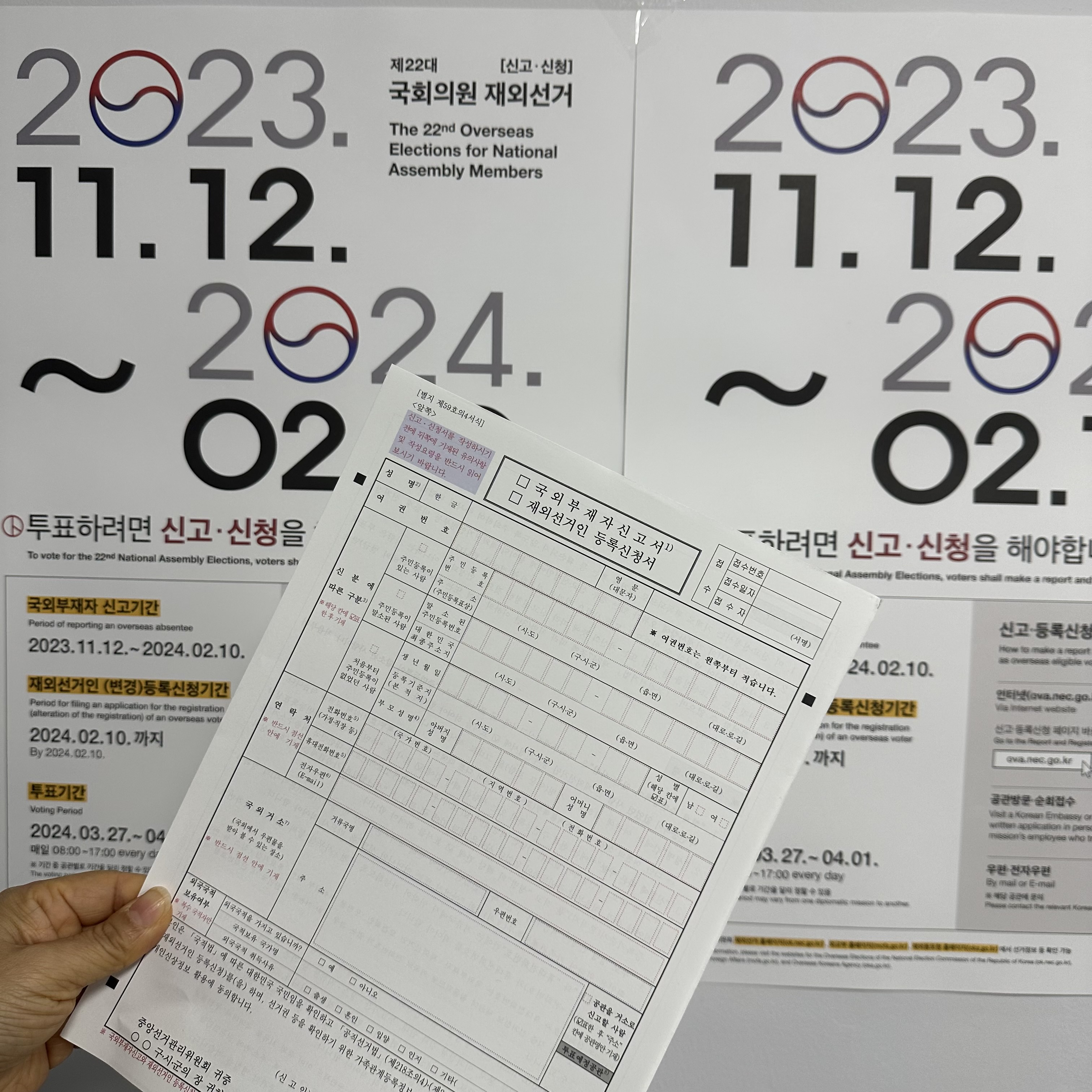 토론토 총영사관 재외선거관리위원회는 모국 제22대 국회의원 총선 재외선거의 국외부재자 신고 및 재외선거인 등록신청과 관련, 신고·신청의 편의를 제공하기 위해 11월에 이어 12월에도 GTA 지역 주요 한인마트와 교회 등에서 출장접수를 계속한다. 출장접수처를 찾아 등록할 때는 본인의 여권번호와 주민번호(생년월일)가 필요하다.