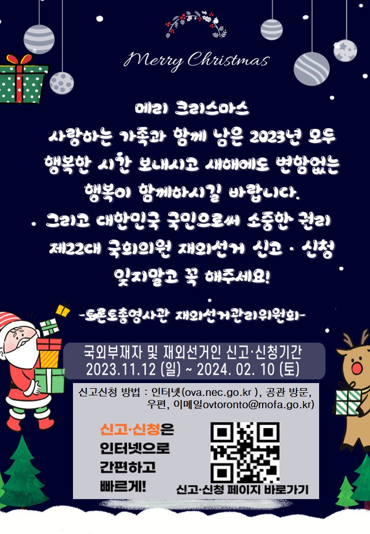 | 재외선거 신고 신청 1월도 출장접수 계속 (0) | 2024.01.15 |