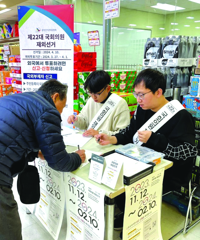 토론토 총영사관 재외선거관리위원회는 모국 제22대 국회의원 총선 재외선거의 국외부재자 신고 및 재외선거인 등록신청과 관련, 신고·신청의 편의를 제공하기 위해 새해들어 1월에도 GTA 지역 주요 한인마트와 교회 등에서 출장접수를 계속한다. 출장접수처를 찾아 등록할 때는 본인의 여권번호와 주민번호(생년월일)가 필요하다.