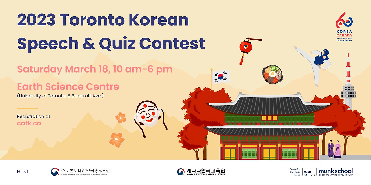 한편 대회 당일 심사시간을 이용한 K-Pop 릴스/쇼츠 콘테스트도 토론토대 학생회 주관으로 진행된다. < 문의: contact.tksc@gmail.com, 416-920-3809 ex.242 >