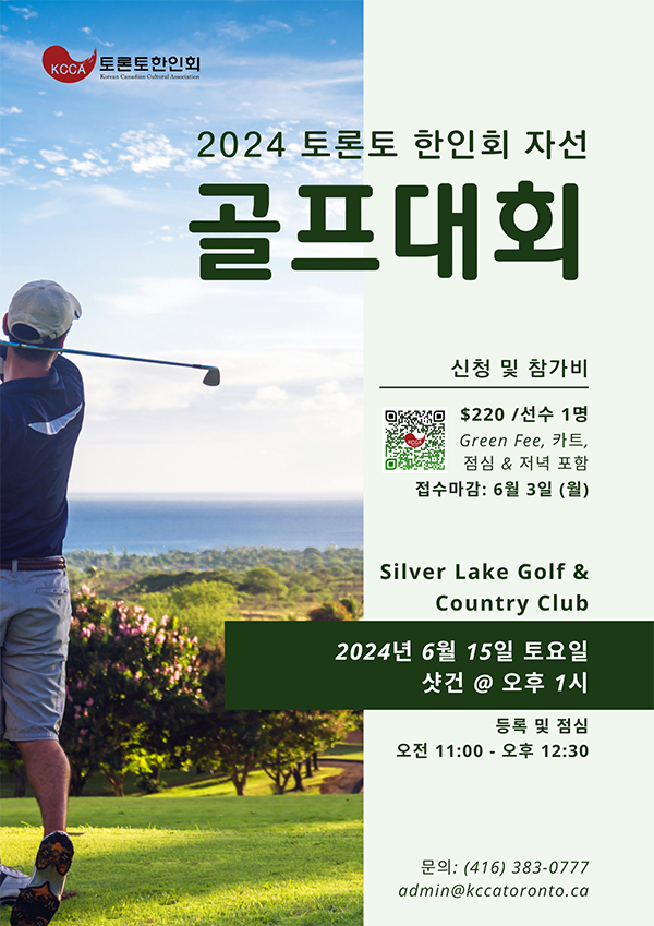 토론토 한인회 (김정희 회장)는 '2024 토론토 한인회 친선 골프대회'를 6월15일(토) 오후 1시 Silver Lake Golf & Country Club에서 개최한다.