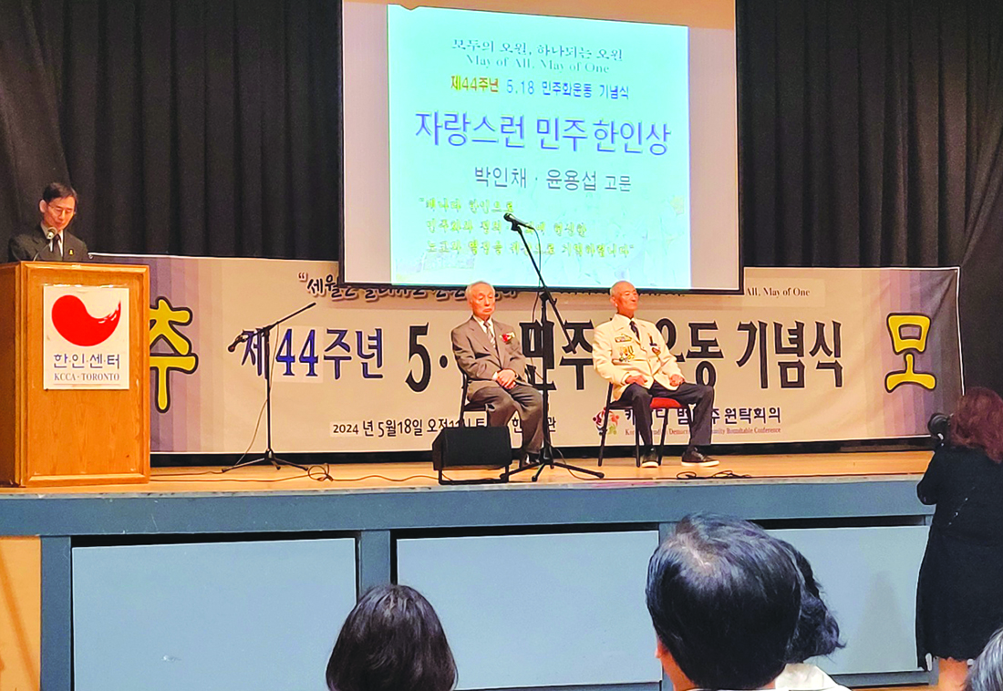 모국 국가기념일이며 세계 기록유산인 5.18 민주화운동 제44주년 캐나다 동부 기념식이 5월18일 오전 11시 토론토 한인회관 대강당에서 1백50여명의 한인동포들이 참석한 가운데 열려 민주주의를 위해 산화한 5.18 영령들을 추모하고 항쟁정신을 기리며 감동을 나눴다.