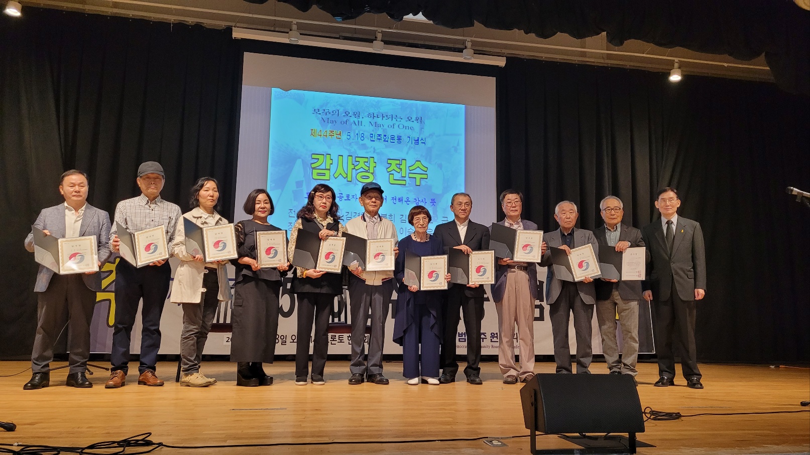 지난해에 이어 올해 기념식에서도 모국 5.18 공로자단체가 보내 온 ‘5.18 정신 함양에 기여한데 대한’ 감사장이 전순영 님 등 모두 12명에게 전수됐다.