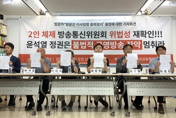 지난 26일 법원은 이진숙·김태규 2인 체제 방송통신위원회(방통위)에서 7월31일 임명된 방문진 새 이사 6명의 임명 효력을 정지했다. 지난해에도 방통위는 야권으로 분류되는 권태선 방문진 이사장과 김기중 이사 2인을 해임했지만 법원이 두 사람의 해임 처분 집행정지 신청을 인용한 바 있다. 결국 지난해에 이어 올해도 사법부의 제동으로 여야 3:6 방문진 구조를 여권 다수로 역전시키지 못했다.