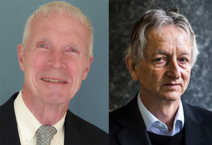 올해 노벨물리학상 수상자들. 왼쪽부터 존 홉필드 미국 프린스턴대 물리학과 교수, 제프리 힌턴 캐나다 토론토대 교수. [위키미디어 제공]