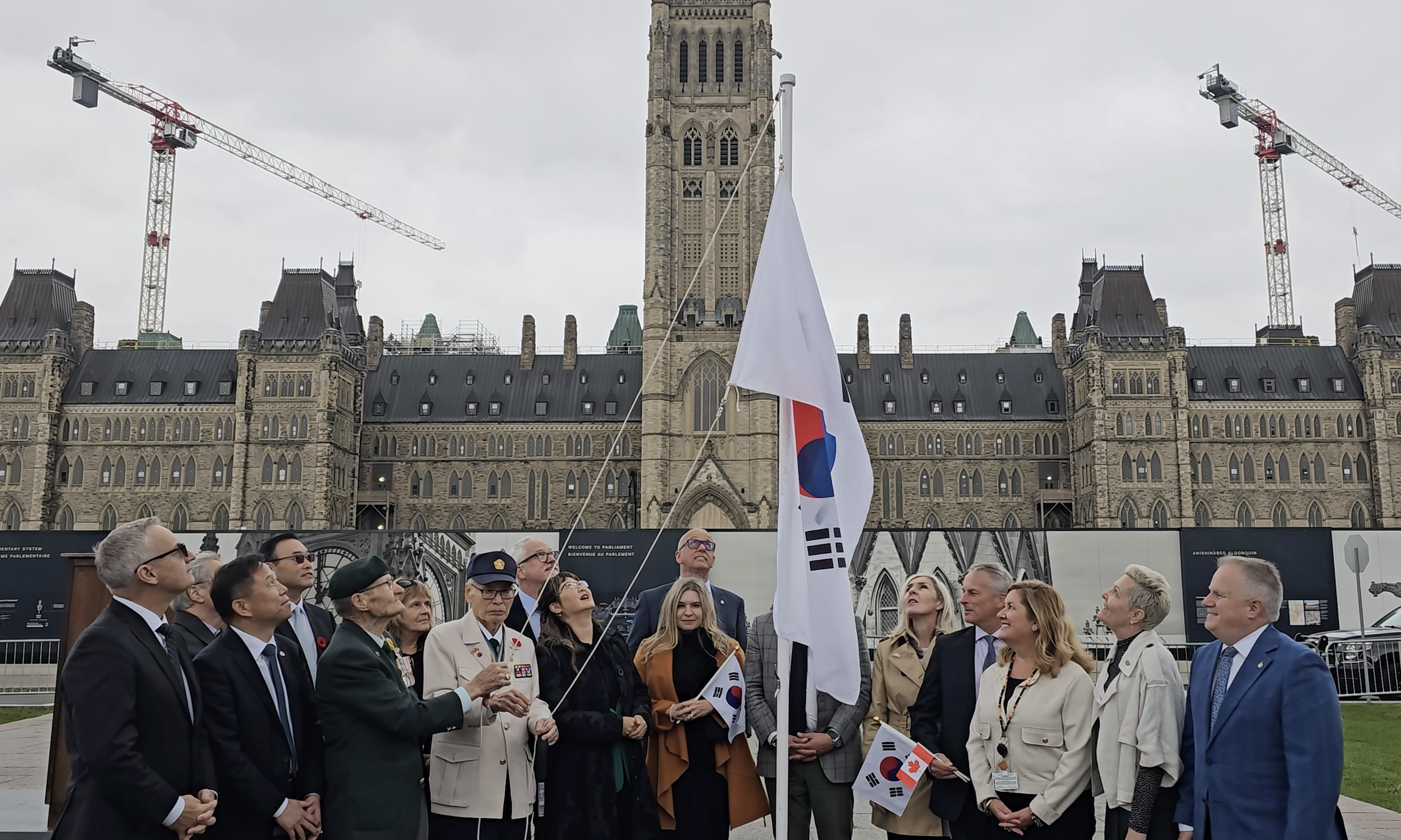 캐나다 오타와 의사당 앞 기념식.. 역사적인 태극기 휘날려