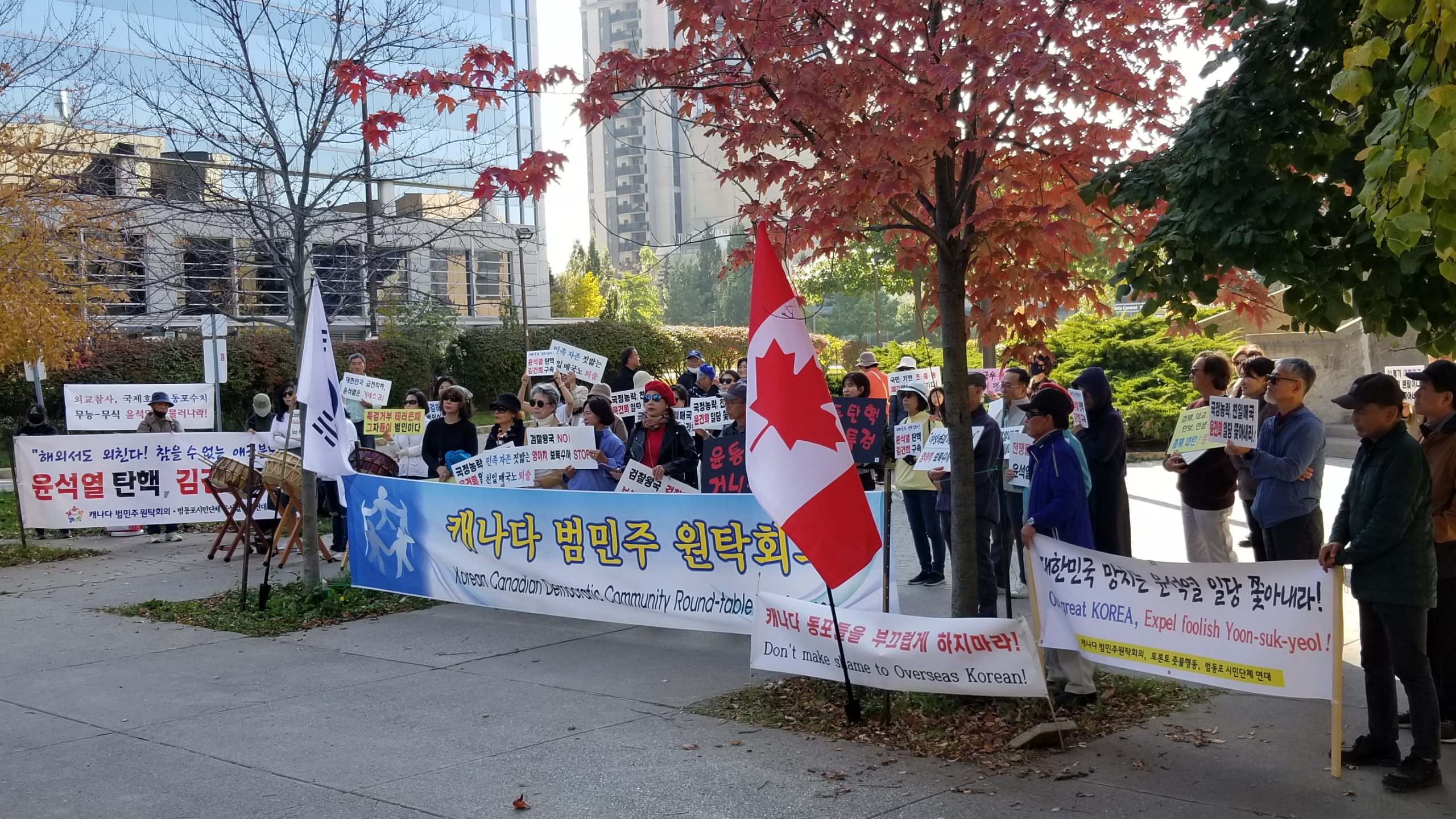 이번 윤건희 타도 동포 시국대회를 개최한 캐나다 범민주원탁회의(Korean Canadian Democratic Community Round-table Conference)는 과거 유신-군사독재 치하 모국의 반독재·민주회복과 인권투쟁 운동을 적극 지원하고 뒷받침 해왔던 민주-진보 세력의 정신과 인맥을 뿌리로 그 정체성을 이어간다는 비전 아래 2016년 11월12일 출범, 한인 민주진영 인사들이 개인 혹은 그룹으로 참여한 시민단체다. < 문의: canadaminju@gmail.com >