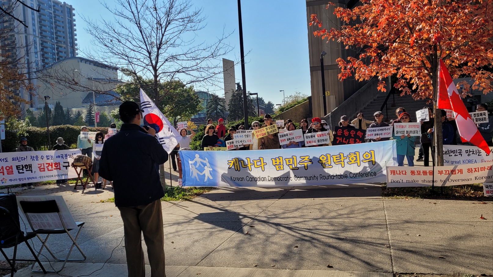 ‘해외서도 외친다!, 참을 수 없는 애국분노!’ 라는 집회 슬로건을 내건 ‘윤건희 타도 캐나다 시국대회’는 대표적인 진보활동 단체 ‘캐나다 범민주원탁회의’ 주최로 ‘범동포시민단체 윤석열 퇴진 연대’가 주관해 민주 진보진영 한인동포들이 결집한 행사로 열렸다.
