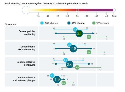 보고서는 2030년까지 각국이 국가 온실가스 감축목표에 따라 온실가스 배출량을 줄인다고 해도 국제사회의 목표치인 ‘산업화 이전 대비 1.5도 내지 2.0도 상승’을 훨씬 넘는 2.6∼2.8도까지 지구 평균기온이 올라갈 수 있다고 경고했다.