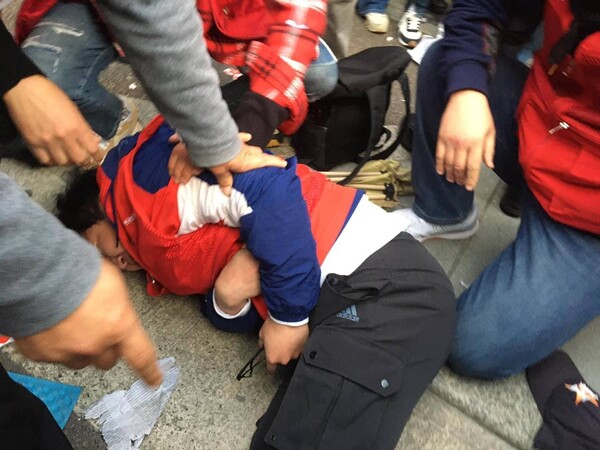 한창민 의원, 땅바닥 뒹굴고 상의 찢겨 온몸 타박상