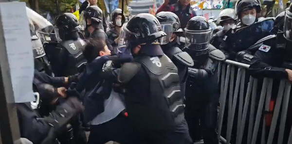 지난 주말 서울 도심에서 열린 윤석열 대통령 퇴진 집회에 경찰이 폭력적으로 난입하는 바람에 부상자가 속출하고 11명이 연행됐다. 정권 차원에서 '불법 폭력 시위'라는 그림을 만들기 위해 의도적으로 기획한 게 아니냐는 의구심이 강하게 제기되고 있다. 노동계를 비롯한 시민사회와 야권은 경찰이 윤석열 정권 사수를 위해 총대를 메고 과잉 진압을 벌임으로써 시민들이 광장에 나오지 못하도록 사전 봉쇄하려는 차원이라며 정면 대응에 나섰다.