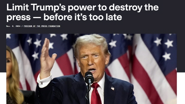 언론자유재단(FPF)은 8일 <언론을 파괴하려는 트럼프의 권한을 제한하는 방법> 성명에서 “트럼프 당선인의 취임식 전에 조 바이든 대통령과 의회는 언론 자유를 파괴하려는 트럼프의 권한을 최대한 제한해야 한다”고 주장했다.