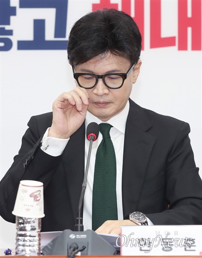 ▲한동훈 국민의힘 대표가 11일 국회에서 열린 최고위원회의에서 발언하고 있다.