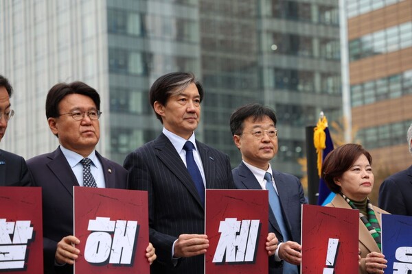 조 대표는 "120년을 뛰어넘어 대한민국 곳곳에서 시일야방성대곡이 울려 퍼지고 있다. 교수, 학생, 노동자, 작가들의 시국선언이 이어지고 있다. 국민 분노가 터져 나오고 있다"면서 "정치는 국민의 뜻을 받아 펴는 것이다. 정당은 국민의 마음을 담는 그릇이다. 그래서 저희 조국혁신당이 오늘 이곳에 섰다"고 말했다.