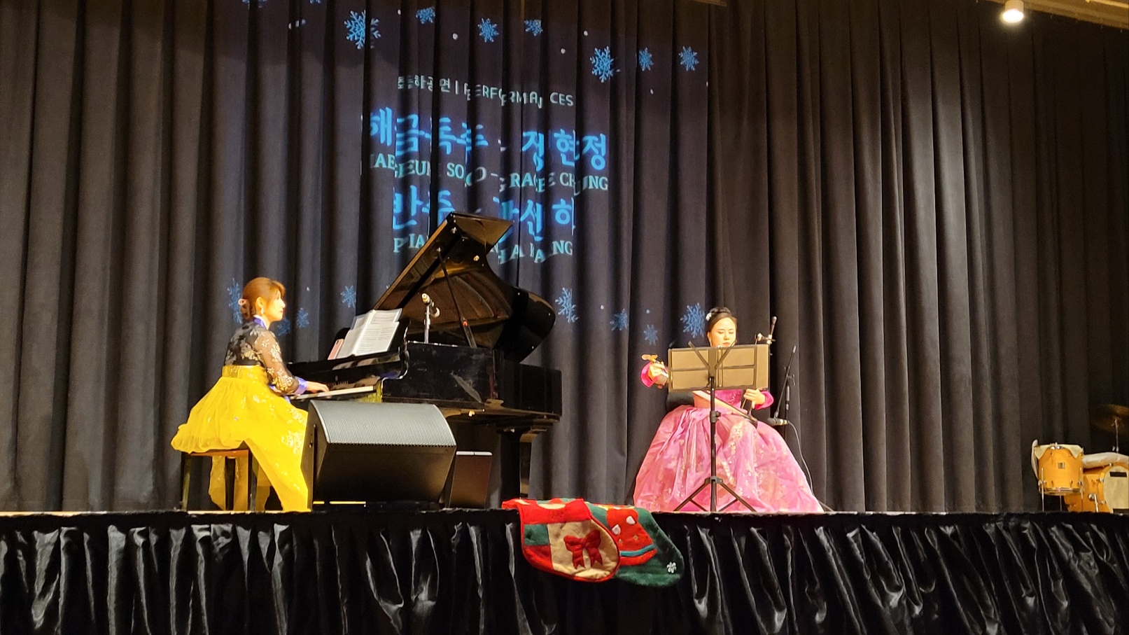 첫 공연은 Eric Santos와 Christa Wilson 커플의 자전거와 스케이팅, Ryan Stephenson의 큐브 스피닝(Cube Spinning) 묘기로 시작하며 분위기를 돋워 참석자들의 박수가 터졌다. 제이유 트리오 연주팀과 함께 김 윌리엄 첼리스트의 연주가 있있고, 해금 연주가 정현정 씨는 강선하 피아니스트의 반주로 ‘아리랑’과 ‘인연’, ‘노엘’메들리 등을 들려주었다. 또 정무성 테너는 유영인 씨의 반주로 ‘내 맘의 강물’, ‘My Way’ 등을 열창해 박수를 받았다.
