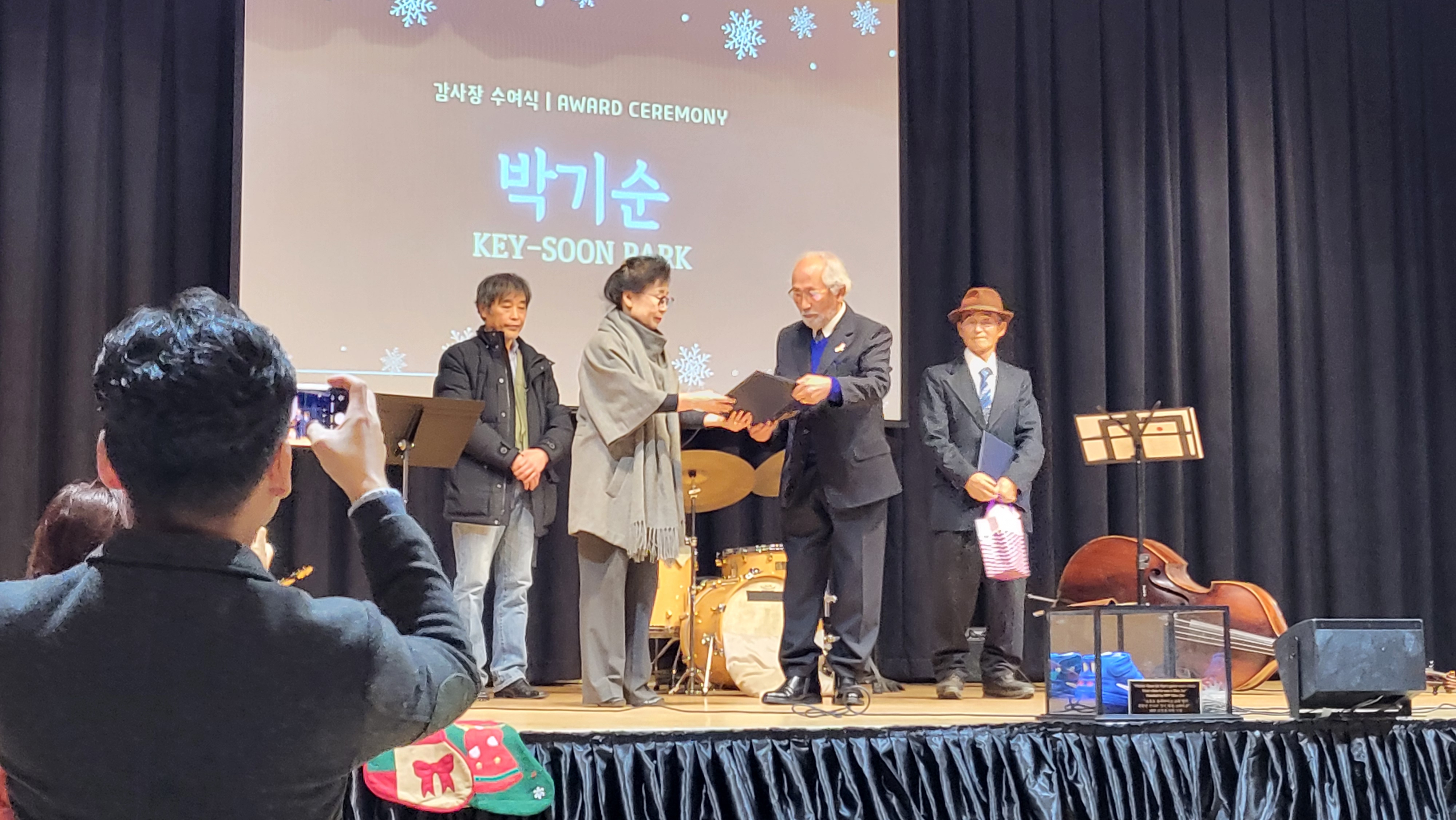 김정희 회장은 이어 한인회에 도움을 준 박기순·이진우·강신학 씨 등 3명에게 감사장과 기념품을 수여했다. 박기순·이진우 씨의 경우 한인회 평화의 소녀상 주변에 화초를 심고 가꾸는 등 3명 모두 소리없이 헌신하며 봉사해온 것으로 알려졌다.