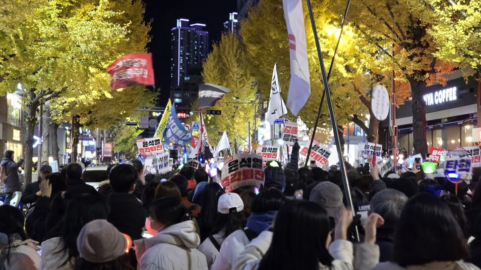 한편, 윤석열퇴진 대구시국회의는 9일 오후 7시 대구시 중구 씨지브이(CGV)대구한일극장 앞에서 ‘대구는 보수의 심장이 아니다’라는 주제로 윤석열 퇴진 대구시민시국대회를 열 예정이다. 김규현 기자
