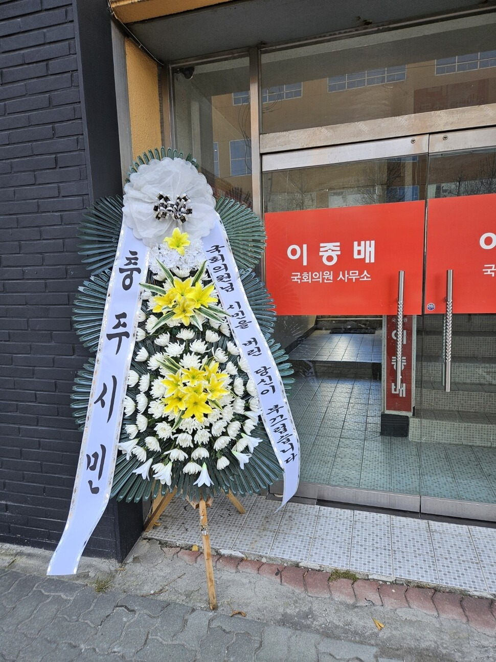 국민의힘 광주광역시당에 노동자들이 ‘내란에 동조한 당’에 보내는 근조화환을 보냈다.