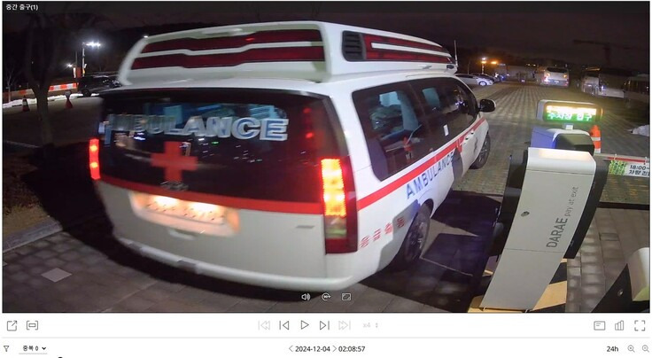 이후 카니발, 칸, 스타렉스, 루비콘, 스파크 등 지프와 에스유브이(SUV)차량이 잇따라 진입한다. 오전2시8분에는 응급차가 출입했던 기록도 나온다. 유혈사태를 비롯해 만일의 사태를 대비한 것 아니냐는 관측이 나온다. 추미애 의원이 공개한 국군방첩사령부의 계엄 선포 대비 문건에도 ‘병원 시설 확보를 준비하라’는 부분이 등장한다.