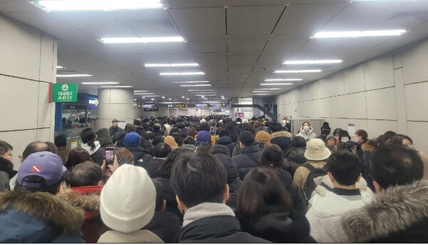 주말 낮인데도 여의도로 가는 전동차 내부는 출퇴근 시간처럼 붐빈다. 경로석 쪽으로 이동하여 분위기를 탐지하려 했으나 실패했다. 빨간색 해병대 모자를 쓰고 있는 분도 있어 귀를 쫑긋했는데 같은 편이다. 옆 칸의 경로석으로 옮겨 살펴보니 주눅 든 표정에 말이 없다. 국회의사당역에서 내리면서 ‘내란 수괴 척결하러 갑시다’ 외쳤더니 여기저기서 유쾌한 폭소가 터져 나왔다.