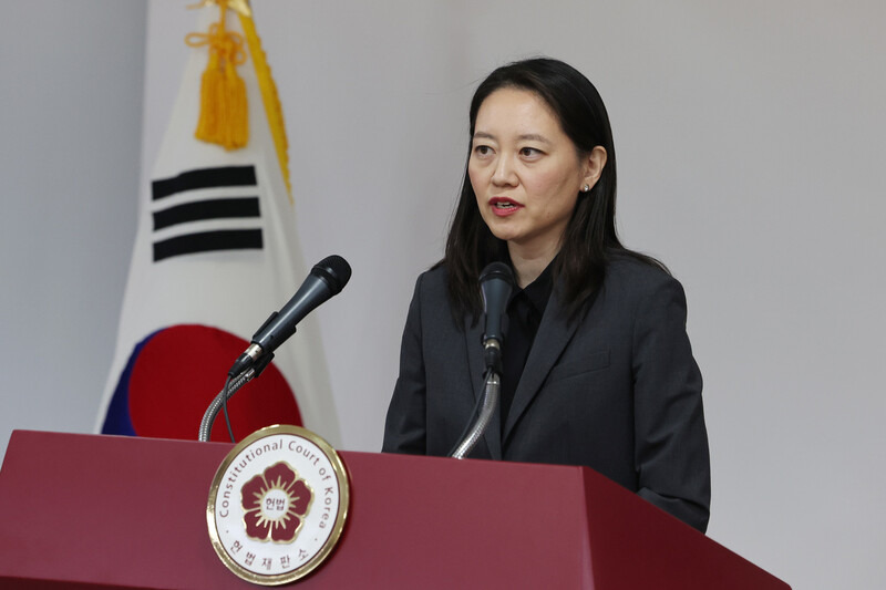 이진 헌법재판소 공보관은 이날 서울 종로구 헌법재판소 별관에서 기자들에게 “대통령 권한대행의 재판관 임명에 관련해서는 예전에 황교안 권한대행이 임명한 사례가 있다”라고 말했다. 2017년 3월 박근혜 전 대통령 탄핵으로 권한대행을 맡은 황교안 당시 국무총리는 양승태 대법원장 몫으로 추천된 이선애 재판관을 임명한 바 있다. 현재 국회 인사청문회를 앞두고 있는 재판관 3명은 국회 몫이다.