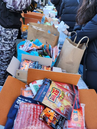 ‘전봉준투쟁단’ 행렬이 남태령 고개에서 막혀 경찰과 밤샘 대치를 이어가고 있다는 소식이 사회관계망서비스(SNS)를 통해 빠르게 공유되면서 이날 시민 3천여명(전농 추산)이 응원봉을 들고 모였다. 영하로 떨어진 한파 추위에도 시민들은 남태령역 위 8개 차로 50m가량을 가득 메웠고, 윤도현 밴드의 ‘아리랑’, 이정현 ‘바꿔’, 부석순 ‘파이팅 해야지’ 등의 노래를 따라 부르며 “윤석열은 방 빼라!”, “경찰은 차 빼라!” 등의 구호를 한 목소리로 외쳤다. 여의도와 광화문 집회 때와 마찬가지로 현장에 함께하지 못한 시민들은 따듯한 국밥 등 배달 음식과 방한용품, 음료 등을 보내 마음을 보탰다.