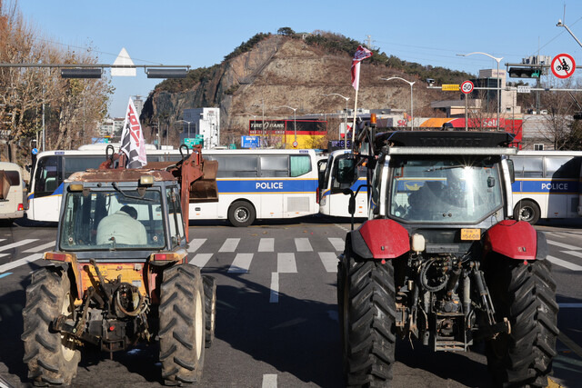 한편 이날 트랙터를 막아선 경찰을 상대로 한 고발장이 접수됐다. 김경호 변호사는 서울 방배경찰서장을 경찰청 국가수사본부에 직권남용권리행사 방해 혐의로 제3자 고발한다고 밝혔다. 김 변호사는 “피고발인(서울 방배경찰서장) 및 피고발인의 지휘·감독하에 있던 경찰력의 행위가 헌법과 법률을 위반하였음에 대한 문제제기”라며 “수사기관은 즉시 수사에 착수하여 구체적으로 어떤 지시가 어떻게 내려져 집행됐는지 면밀히 조사해달라”라고 요청했다. < 한겨레 박고은 기자 >