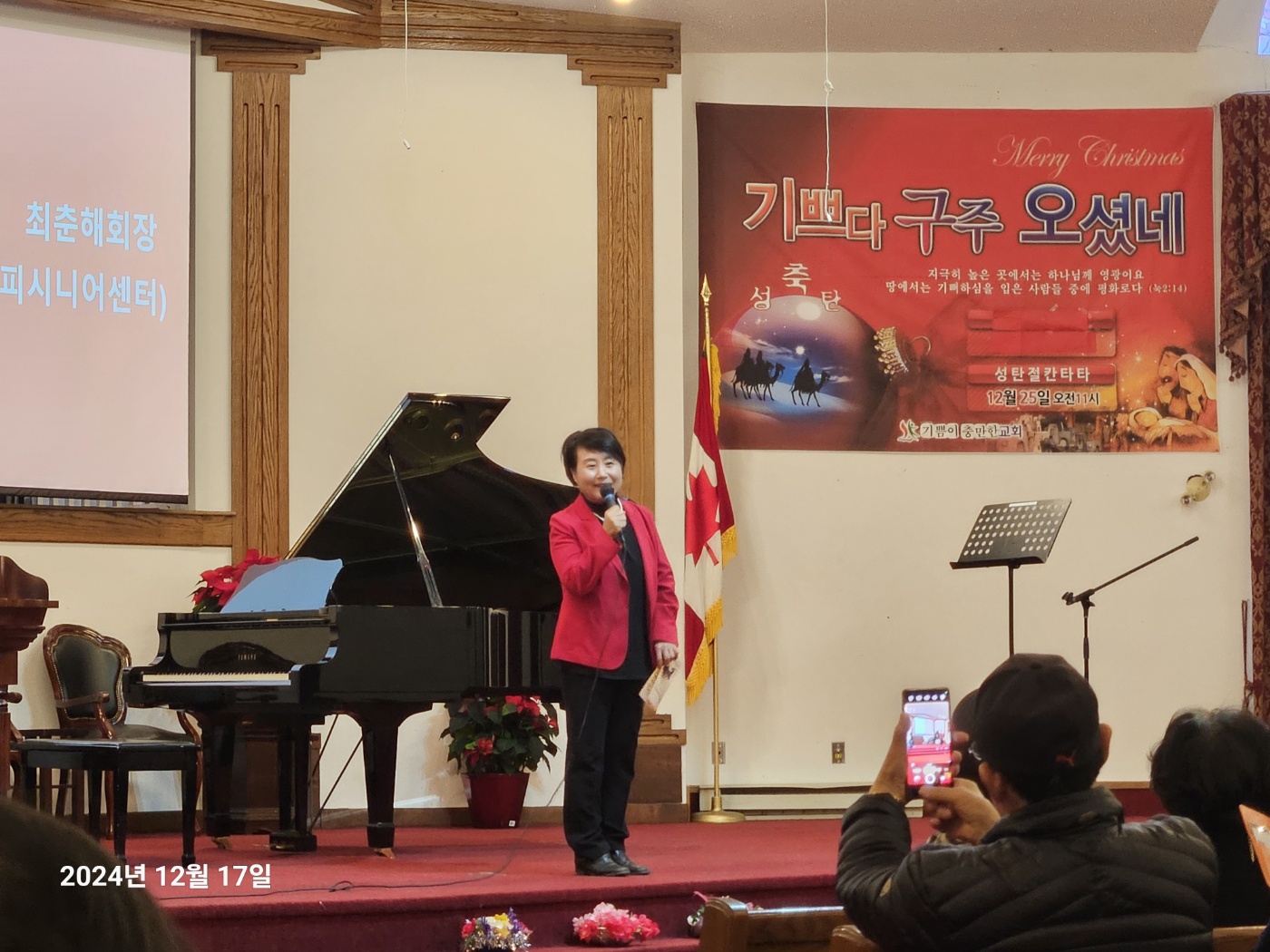 시니어 봉사단체 ‘해피 시니어센터’(대표 최춘해)가 성탄축제 및 방학식을 17일 오전 11시 기쁨이 충만한교회에서 200여명이 참가한 가운데 성황리에 개최했다.