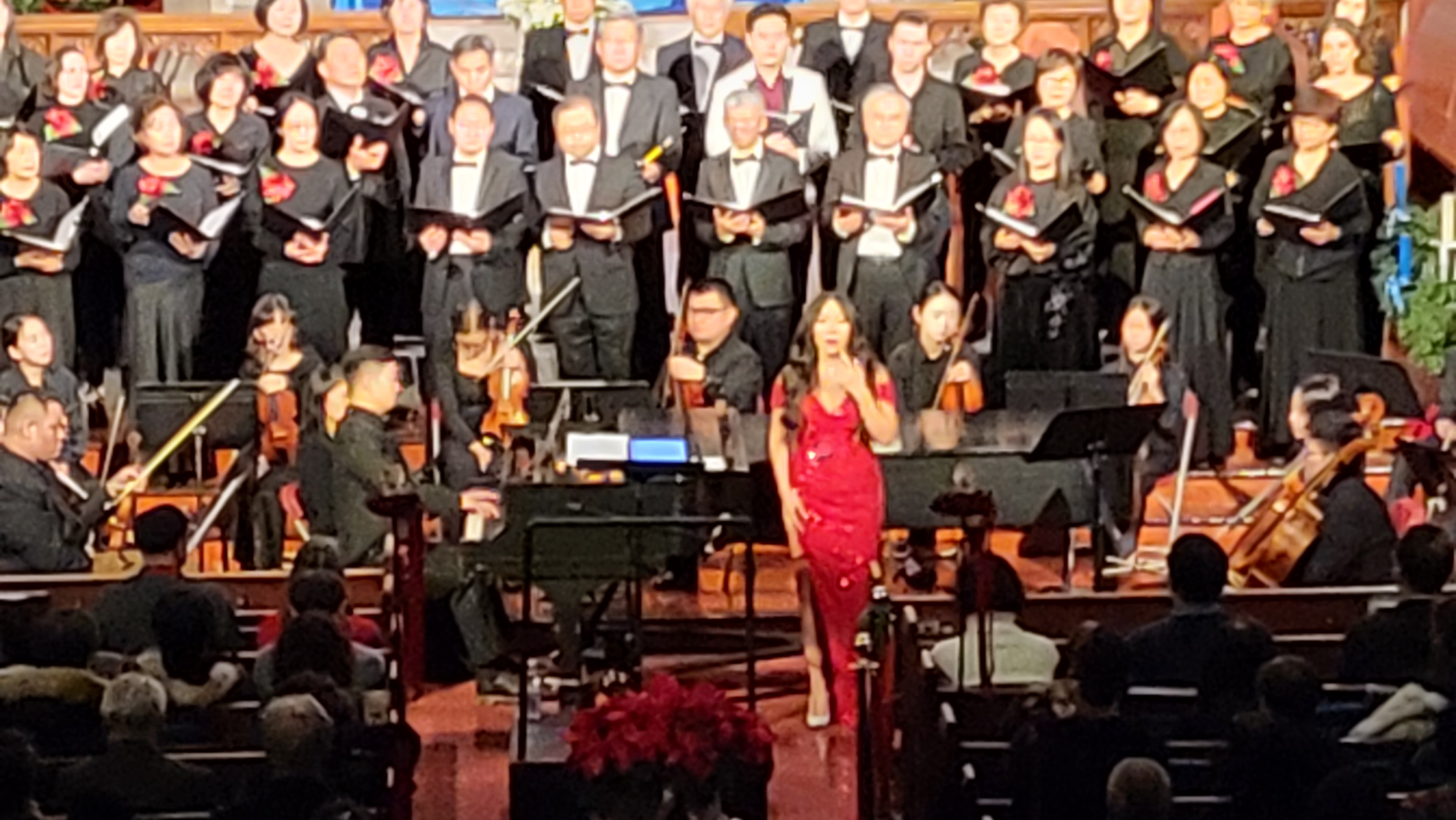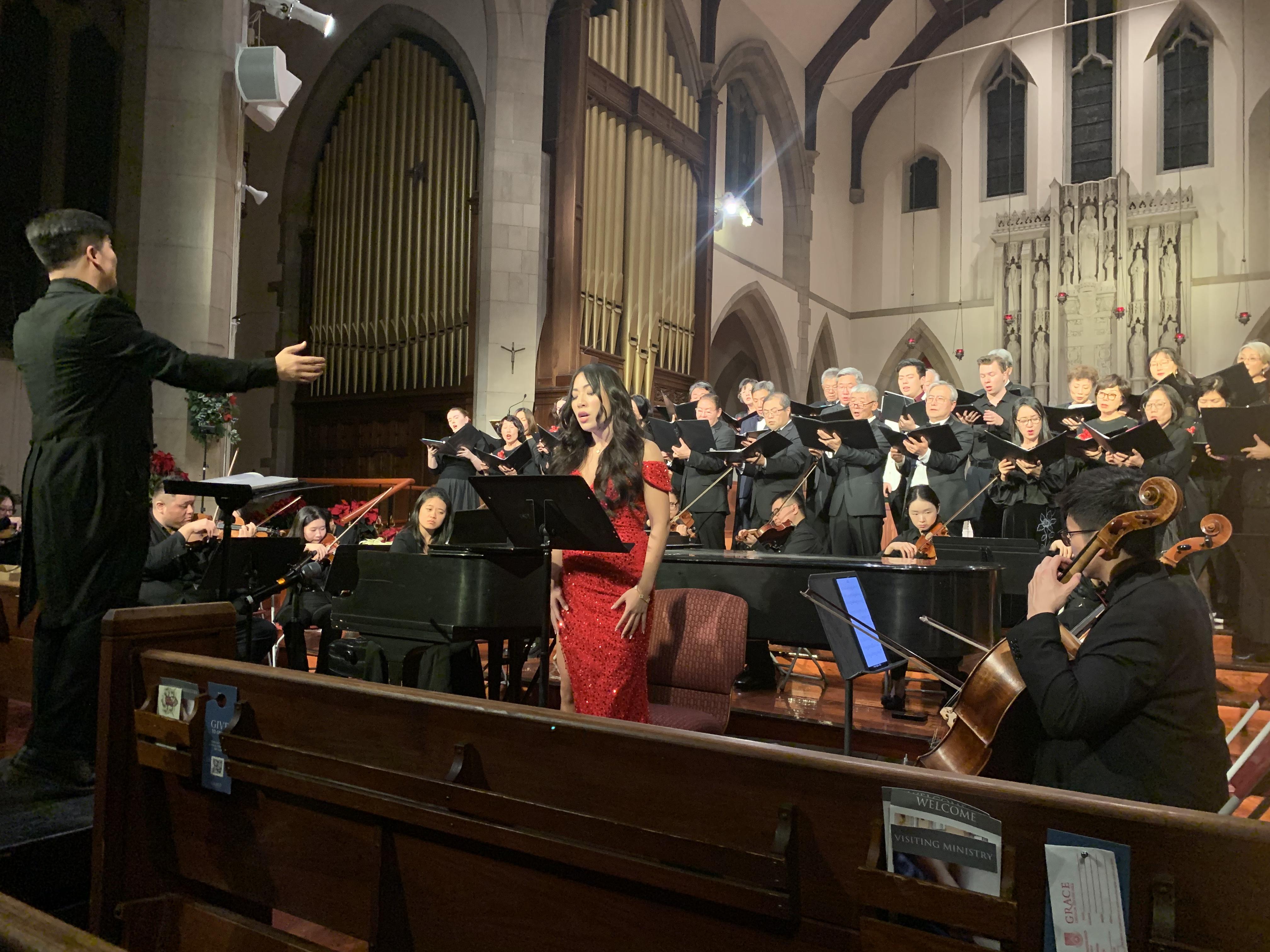 성탄절을 앞둔 축하무대로 장식한 이날 음악회는 34인 혼성 합창단과 함께 20인조‘서한 오케스트라와 음악인들’(Seohan Ochestra and Musicians)이 협연했다. 피아노 반주는 오수정 피아니스트가 맡았다.