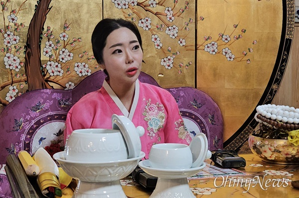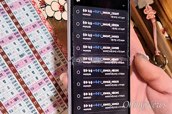 "지난 2022년 2월 처음 방문했어요. '소문을 듣고 찾아왔다'고 했죠. 주로 전화 등으로 사전에 예약을 잡고 왔어요. 통화 녹음이 50여 차례 남아있네요(2022년 2월 2일~2024년 1월 22일 45차례 - 기자 주). 30여 차례 방문했는데 그게 다 점을 보기 위해 다녀간 건 아니었고요. 수업을 한 날도 있었어요.
