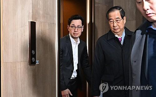 앞서 이날 김용현 전 국방부 장관의 변호인단은 12·3 비상계엄 선포와 관련해 김 전 장관이 사전에 한 대행을 통해 윤 대통령에게 계엄 건의 절차를 밟았다고 주장했다. < 연합 홍국기 기자 >