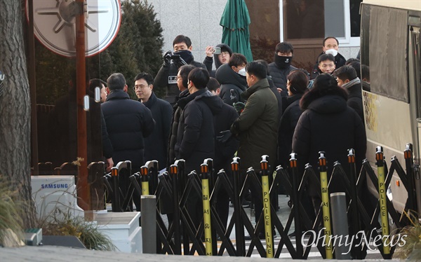 ▲12.3 윤석열 내란사태를 수사 중인 고위공직자범죄수사처 수사관들이 3일 오전 용산구 한남동 대통령 관저에 윤석열 대통령의 체포영장을 집행하기 위해 걸어서 들어가고 있다. ⓒ 유성호