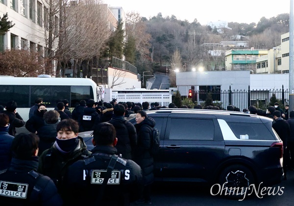 공수처가 내란 우두머리 혐의를 받는 윤석열 대통령에 대한 체포영장을 집행하기 위해 서울 용산구 한남동 대통령 관저에 도착했다.
