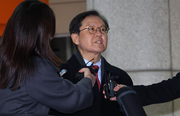 내란 우두머리 혐의로 체포된 윤석열 대통령의 구속 전 피의자심문(영장실질심사)이 종료된 18일 서울 마포구 서울서부지법에서 윤 대통령측 윤갑근 변호사가 취재진의 질문에 답하고 있다. 2025.1.18 [공동취재] 연합뉴스