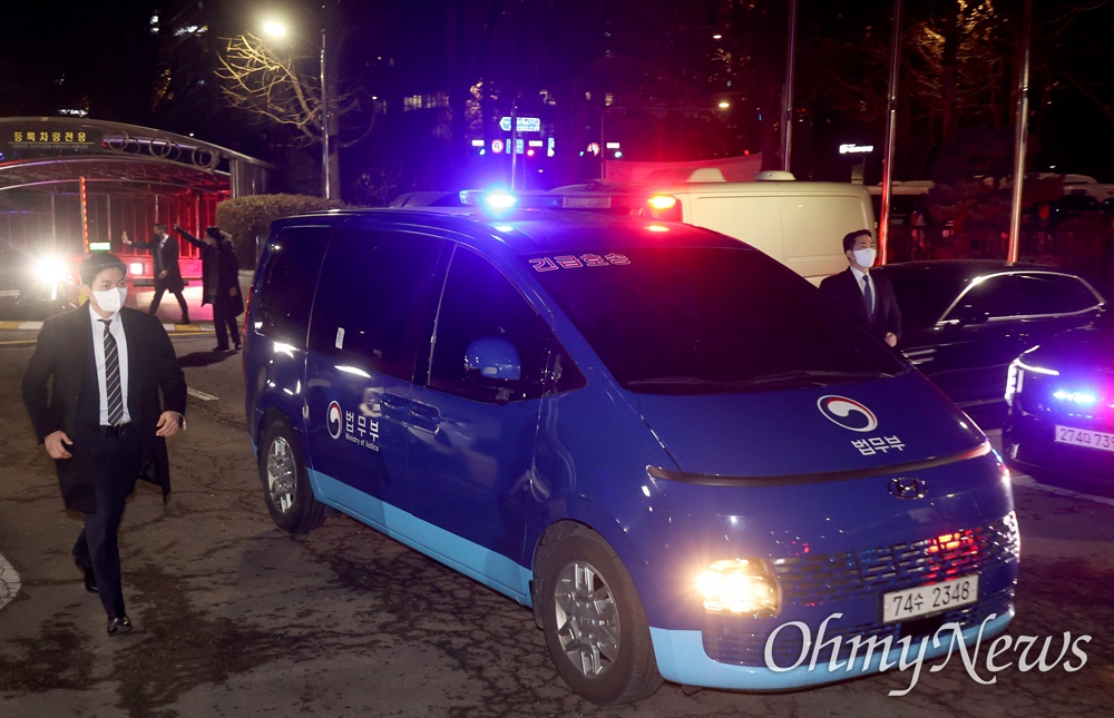 ▲'내란 우두머리' 혐의 등으로 체포된 윤석열 대통령이 18일 오후 서울 마포구 서울서부지방법원에서 구속 전 피의자 심문(영장실질심사)을 마친 뒤 호송차를 타고 구치소로 이동하고 있다.유성호