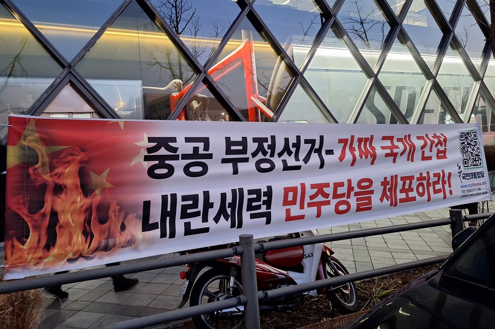 특히 눈길을 사로잡았던 것은 대형 현수막에 붙은 중국 비난 구호였다. '중공 부정선거-가짜 국개 간첩, 내란 세력 민주당을 체포하라'. 중국 공산당의 약자로 과거 군사정권 시대에 쓰던 '중공'이라는 용어가 등장한 것도 신기하고, 부정선거와 중국을 연계하는 것도 놀라웠다. 음모론자들은 선관위 설명은 아예 들으려고 하지도 않고 심지어 선관위 직원들을 중국의 간첩으로 여긴다. 국회와 더불어 선관위가 계엄군의 주요 공격 대상이 된 이유다.