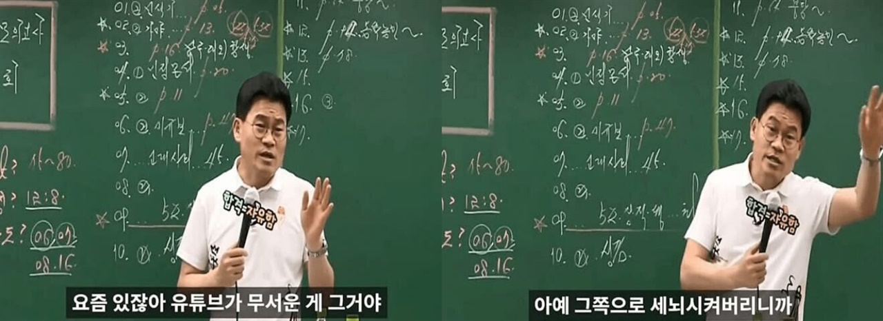 ▲과거 강의 영상에서 유튜브가 사람들을 세뇌시켜 무섭다고 발언한 전한길 ⓒ 유튜브 갈무리관련사진보기