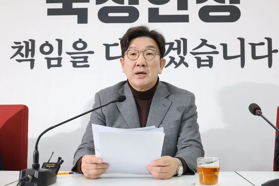 권성동 국민의힘 원내대표는 2일 오전 기자간담회에서 최상목 대통령 권한대행 부총리의 헌법재판관 임명 거부에 따른 권한쟁의심판 사건을 거론하며 “헌재가 (임명해야 한다고) 인용 결정을 하더라도 최상목 권한대행은 임명을 거부해야 한다”고 주장했다.