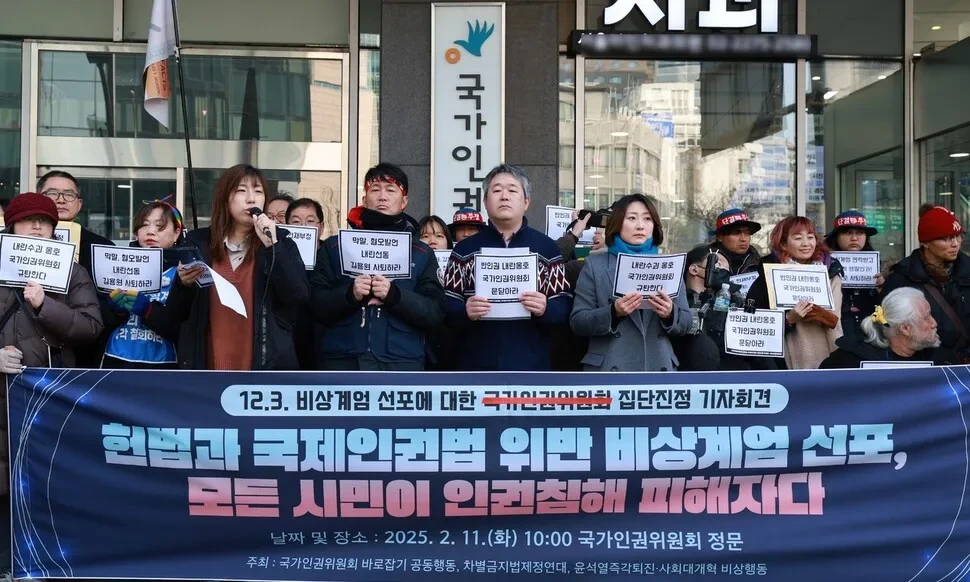 진정에 동참한 국회 주변 주민 한승주씨는 “계엄이 선포된 날 저는 자유와 신체 안전에 대한 권리, 심리적 안정권 등을 분명히 침해받았다. 왜 인권위는 국가 권력으로부터 광범위하게 침해된 수많은 국민의 인권은 아랑곳하지 않는 것이냐”고 말했다. 전날 인권위는 윤 대통령의 방어권을 담은 안건을 의결한 반면, 비상계엄 선포 관련 인권침해를 인권위가 직권조사한다는 내용의 안건(대통령의 헌정 질서 파괴 비상계엄 선포에 대한 인권위 직권조사 및 의견 표명의 건)은 기각한 바 있다.