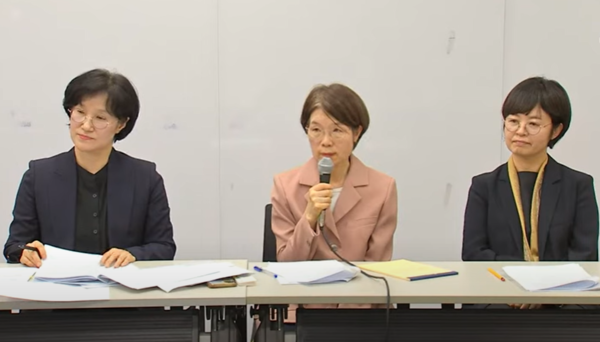 국가인권위원회 남규선 상임위원(가운데)과 원민경(왼쪽)‧소라미 비상임위원이 11일 오후 서울 중구 인권위 배움터에서 기자회견을 열고 있다. JTBC 유튜브 중계 화면 갈무리