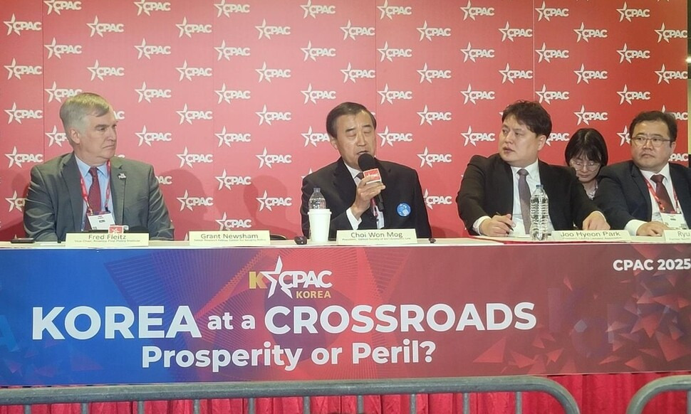 입장 발표에는 최원목 이화여대 법학전문대학원 교수, 류현우 전 주쿠웨이트북한대사관 대사대리, 박주현 변호사 등 한국 쪽 인사들이 참여했다. 또 미국 쪽에선 친트럼프 성향 싱크탱크인 미국우선주의정책연구소(AFPI)의 프레드 플라이츠 부소장, 고든 창 변호사, 스티브 예이츠 헤리티지재단 선임 연구원 등이 나섰고 청중과 취재진 등 약 100명이 현장에서 지켜봤다.
