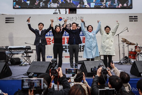 이 대표는 끝으로 "아직 내란은 끝나지 않았고 빛의 혁명도 완성되지 않았다"며 "어둠이 짙을수록 새벽은 가까우며, 영원할 것 같은 겨울도 가고 봄이 온다. 아름답고 따스한 봄을 두 손을 함께 잡고 만들어 나가자. 희망의 대한민국을 우리 손으로 만들어 나가자"고 선언했다.