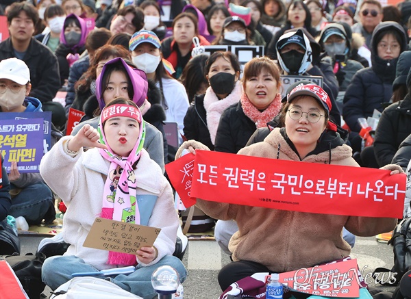 용인대학교에 재학 중이라는 김가온 씨는 "모두 내란의 밤 공포를 느끼며 온몸으로 민주주의 지켜냈다. 내란에 실패한 후 탄핵안이 가결되고 장고 끝에 현직 대통령이 처음으로 체포되는 모습을 지켜봤다. 이렇게 고생한 우리가 윤석열 그냥 풀어줄 수 있겠냐"며 "윤석열 즉시 항고해 세상이 더렵혀지지 않게 윤석열을 영원히 봉해주기 바란다"고 했다.