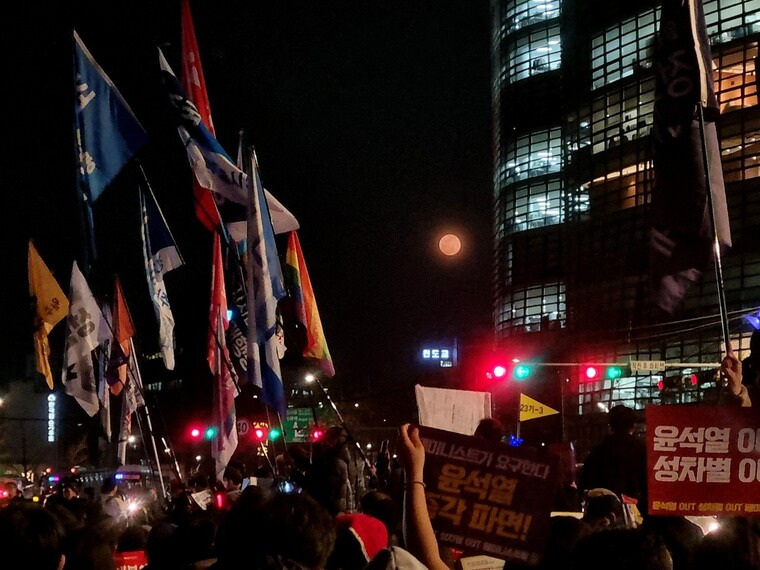 포기하지 않고 이어 온 ‘윤대통령 탄핵 촉구’ 집회에 끝이 보인다. 다음주 중엔 탄핵 선고가 이뤄지리라는 전망이 많기 때문이다. 집회는 이어져도 ‘윤석열 탄핵’ 구호는 이번 주말이 마지막일 수 있는 셈이다. 밍갱 비상행동 활동가는 “마지막이 될 수도 있다는 생각에 상황실도 바짝 촉각이 곤두서 있다”며 “정말, 반드시, 빠르게 파면시켜야 한다는 마음으로 구성원 모두 혼신의 힘을 내고 있다”고 강조했다.