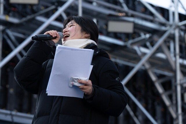 한국진보연대 활동가이자 집회 사회자 역할을 자주 맡는 박민주 행진팀장은 센스 있는 선곡으로 집회를 축제로 만든 주역 중 하나다. 세대를 아우른 유행곡에 단순한 율동을 더해 탄핵 구호에 신명을 더했다. 그는 “70대 노인도 따라 부를 정도로 쉬운 가사여야 하고, 구호가 들어갈 틈이 있어야 하고, 행진 속도에 맞는 적정한 빠르기여야 한다. 김수철의 ‘젊은 그대’는 조금 느려서 속도를 조절했다”며 엄정한 집회 선곡 기준을 설명했다. 요즘도 박 팀장은 퇴근 뒤 ‘집회용 케이팝’ 연구에 매진한다. “노래 틀어놓고 박자 타면서 ‘윤석열 탄핵!’ 구호 넣어보다가 잠이 듭니다.”